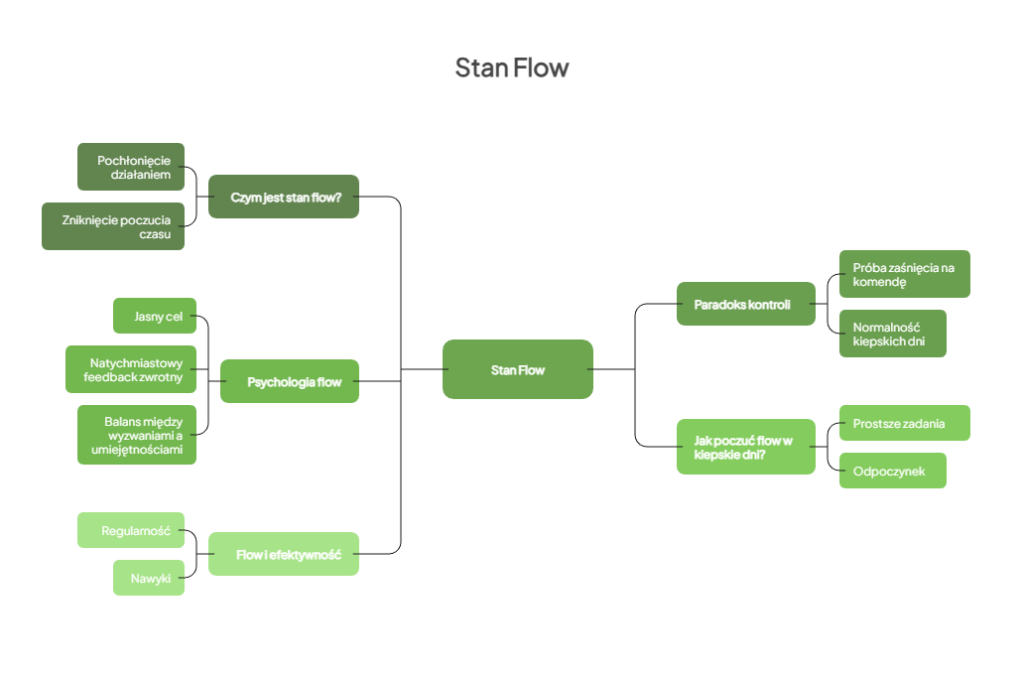 W skrócie: Stanu flow nie można wymusić na zawołanie – to emergentny stan mózgu, który pojawia się w odpowiednich warunkach. Według 10-letniego badania McKinsey, cytowanego przez Stevena Kotlera w Harvard Business Review, menedżerowie w stanie flow są nawet 5x bardziej produktywni. Możesz jednak stworzyć warunki sprzyjające flow: znaleźć swoją optymalną porę, wyeliminować dystraktory (szczególnie telefon) i po prostu zacząć działać zamiast czekać na motywację. Klucz to regularność, nie perfekcja.