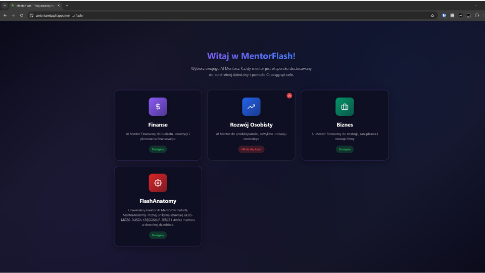 AI Mentor to nie generyczna „osobowość AI”, która próbuje być wszystkim dla wszystkich. To specjalista wyszkolony w konkretnej dziedzinie, który zna każdy zakręt na drodze, którą próbujesz przejść.
