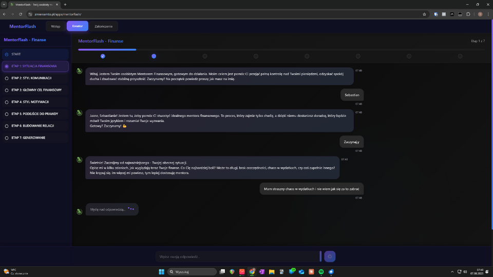 Co robisz: Budujesz AI mentora z unikalną osobowością, ekspercką wiedzą i stylem komunikacji dopasowanym do Twojego sposobu myślenia.