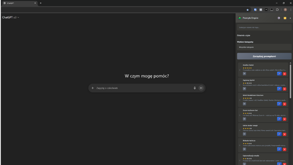 4. PromptEmpire – rozszerzenie do przeglądarki wraz z zestawem 50 mentoringowych promptów